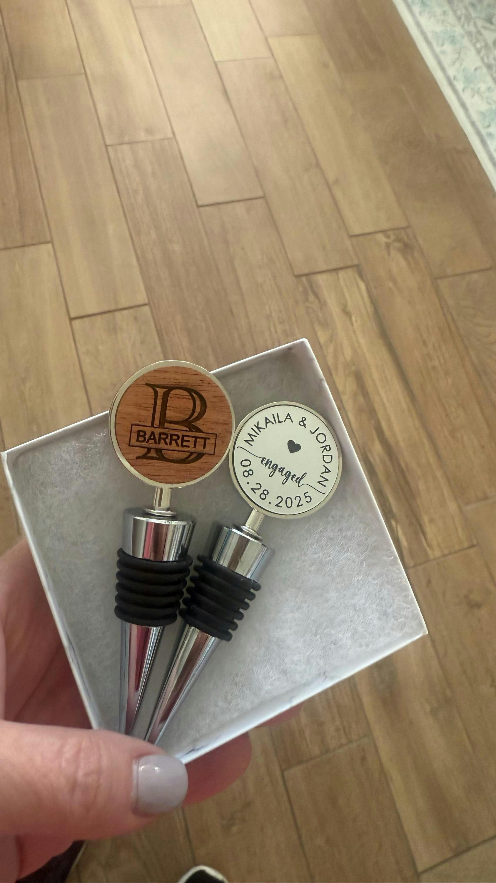 These wine stoppers make the perfect wedding gift for a couple, engagement gift, housewarming gift, anniversary gift or real estate closing gifts.