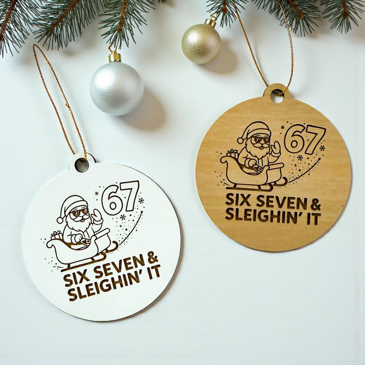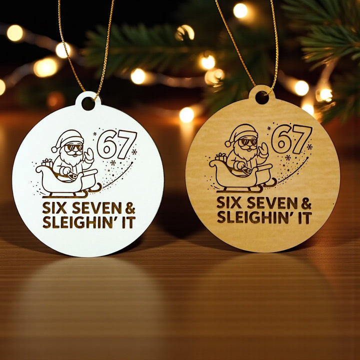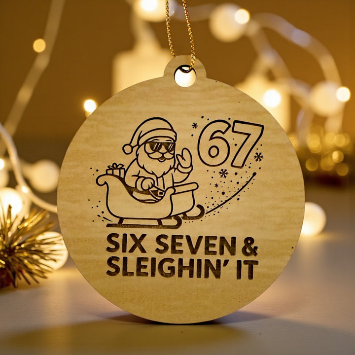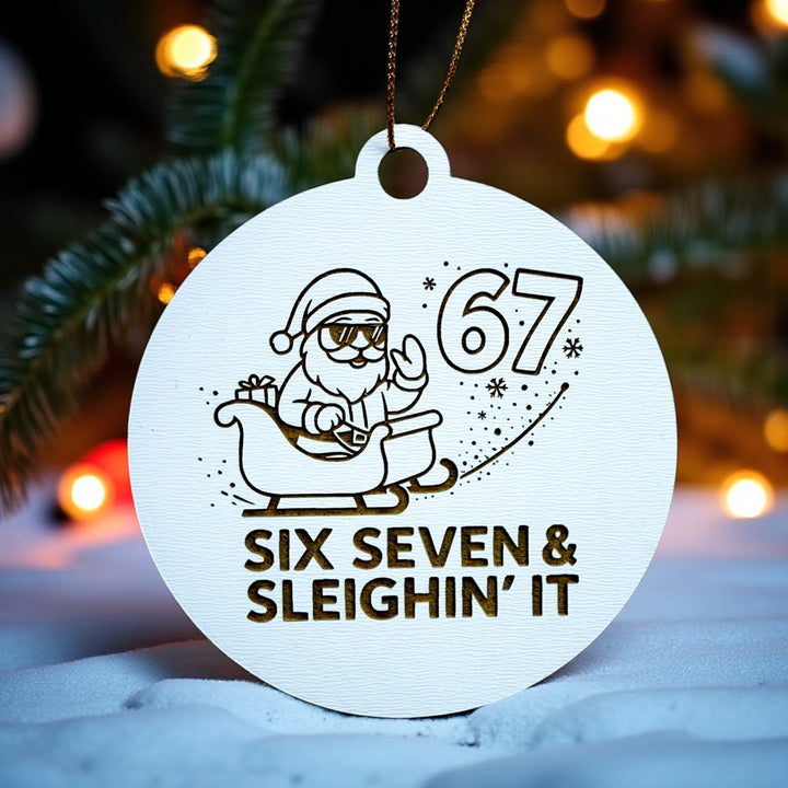 Six Seven & Sleighin’ It Ornament, Funny Santa Christmas Ornament, Stocking Stuffer for Teens